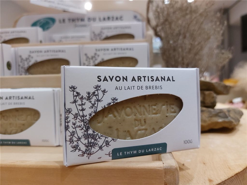 La savonnerie du Larzac, créée depuis 10 ans, fabrique ses propres savons au lait de brebis artisanalement.